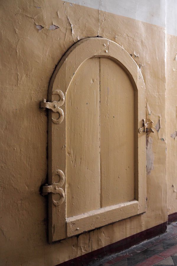 zachowała się częściowo stolarka z czasów budowy, w tym drzwi w